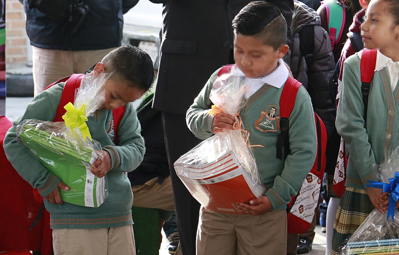 En la primaria bilingüe “Lázaro Cárdenas” y como parte del programa Familias Fuertes del gobierno del Estado de México, los alumnos recibieron paquetes de útiles escolares y libros de texto gratuitos.
