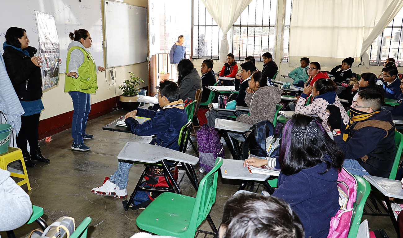 Identificar los diferentes tipos de residuos, de dónde proceden y cómo eliminarlos para que no generen daños al medio ambiente, conocer y analizar la relación entre la utilización de las materias primas y los desechos, así como promover actitudes de consumo responsable y reciclaje, son objetivos de la plática “Separación de Residuos Sólidos” que imparten promotores del Centro de Educación Ambiental de Toluca a estudiantes de nivel básico.