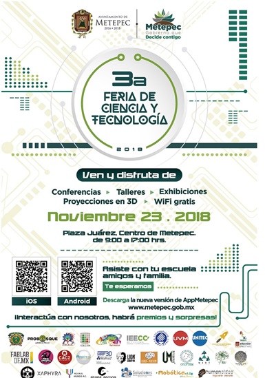 Como parte de las acciones que realiza el gobierno municipal para incentivar el interés en niños y jóvenes por temas científicos, la administración que encabeza el presidente, David López Cárdenas, realizará la 3ª Feria de Ciencia y Tecnología, que se llevará a cabo el próximo 23 de noviembre en la explanada de la Plaza Benito Juárez.
