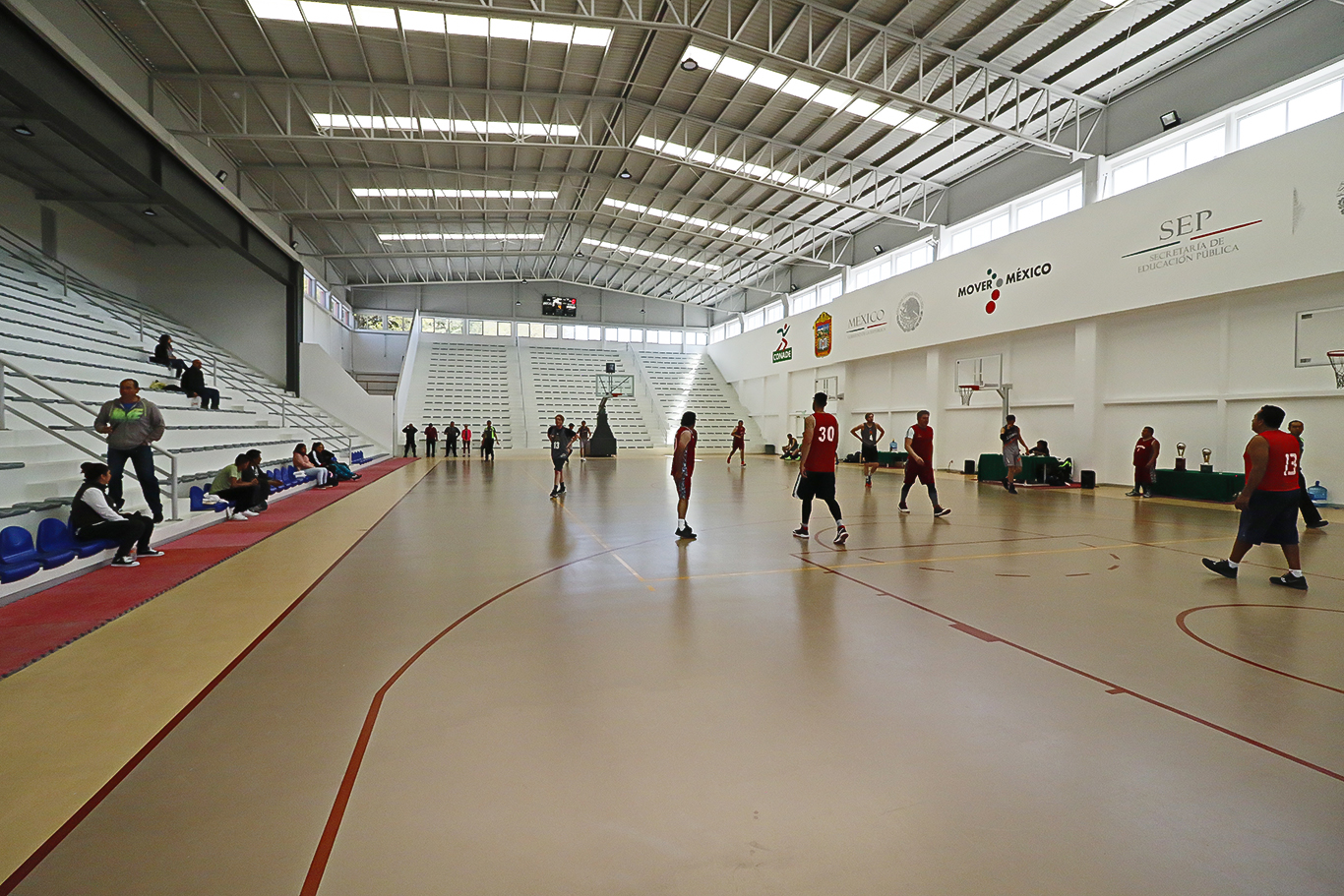 Asimismo, supervisaron el gimnasio de usos múltiples donde se cambió el material del piso e instalaron marcadores y tableros electrónicos, se renovó el sistema de iluminación, rehabilitaron los baños y se colocó piso taraflex a toda la zona con el propósito de proporcionar comodidad y seguridad durante la práctica de actividades deportivas.