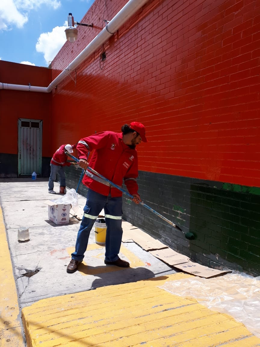 Poda de césped y arbustos, retiro de maleza en guarniciones y banquetas, mantenimiento de herrería y puertas, así como aplicación de pintura en fachadas, lavado de pasillos y patios comunes son algunos de los trabajos que realizan cuadrillas del Departamento de Mantenimiento de Mercados Públicos.