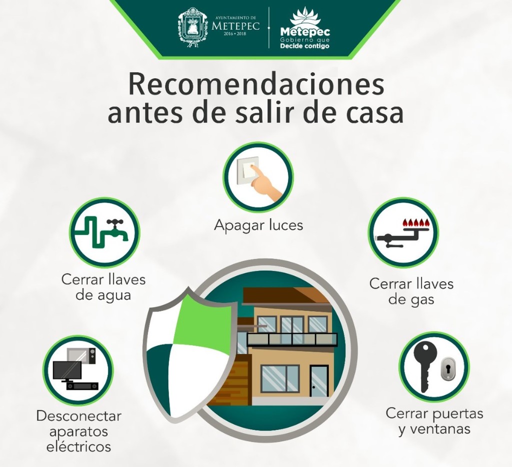 Asimismo, señaló que si utilizan transporte público o privado, deben usar el cinturón de seguridad y en caso de acudir a estaciones de autobuses, vigilar de forma permanente a los menores, además de cerrar las llaves de gas y las de agua, igual que ventanas y cerraduras. Para quienes permanezcan en sus casas, el coordinador hizo hincapié en buscar alternativas de esparcimiento sano en familia.