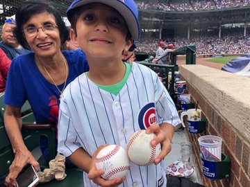 Antes de finalizar el encuentro (Cachorros 7 – Cardenales 2), el niño recibió no una, sino dos pelotas,una sin autografiar y otro firmada por el jugador puertorriqueño Javy Báez.