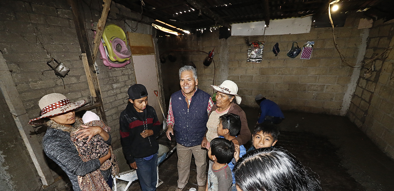 “¡Ya vamos a tener piso, ya vamos a tener piso!”, expresaron el pequeño Carlos y sus primos mientras dejaban ver en sus rostros sonrisas y felicidad cuando el presidente municipal de Toluca, Fernando Zamora Morales, entró a la vivienda con la carretilla llena de mezcla para echar el piso de cemento: “Ya podremos jugar, antes no porque estaba la tierra, ahora será diferente, vamos a bailar el trompo y a echarnos un tirito con las canicas. Estamos alegres porque mi abuelita tendrá su casa bonita”, expresó.