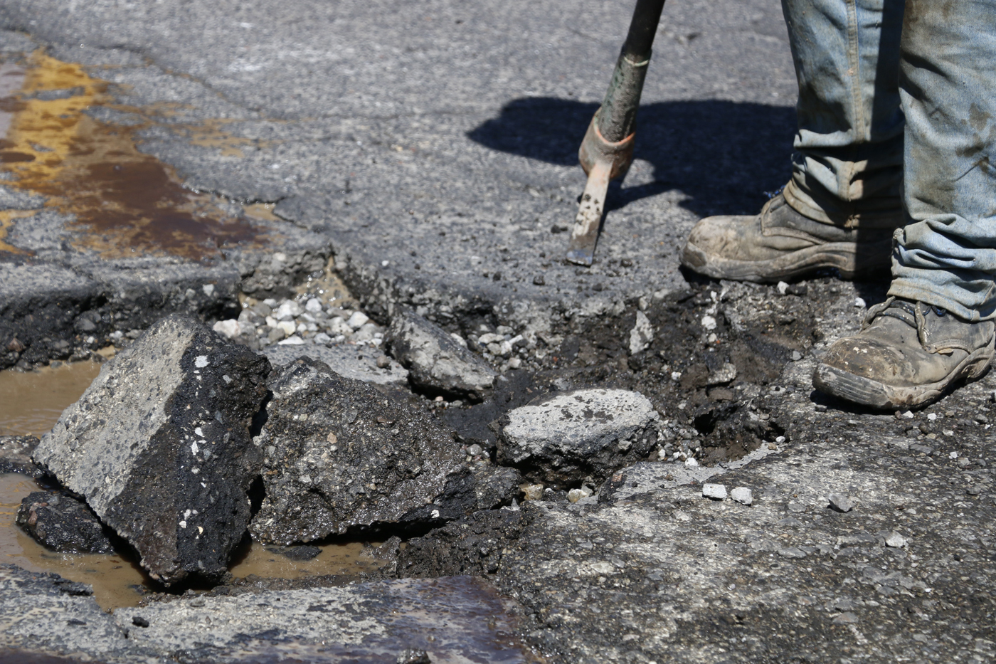 Una de las cuadrillas que laboró en el lugar, llevó a cabo los trabajos de apertura, para que una vez retirado el material dañado se realizara el riego de liga y posteriormente la mezcla asfáltica en caliente para, finalmente, hacer la compactación del pavimento.