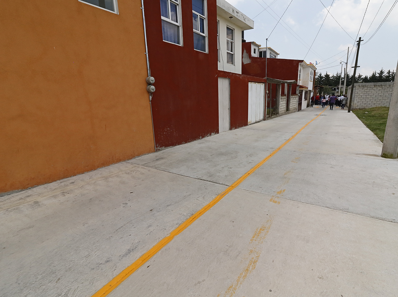 De acuerdo con la Dirección de Obra Pública la pavimentación incluyó trazo, nivelación y mejoramiento de la base de terracería para la aplicación del concreto hidráulico, así como la señalización de tránsito.