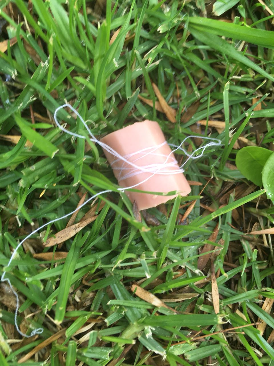 Encontraron trozos de salchicha en una de las áreas verdes, atado a estas, un material presumiblemente hilo, de uso doméstico.