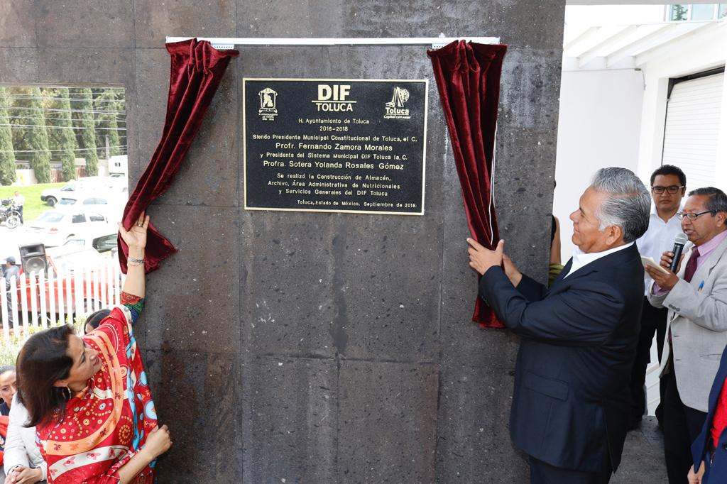 Con el objetivo de brindar un mejor servicio a la población, el alcalde Fernando Zamora Morales inauguró el edificio que albergará el almacén, servicios nutricionales, archivo, talleres de herrería, carpintería, aluminio, electricidad, albañilería, bodega y comedor del Sistema Municipal DIF Toluca.