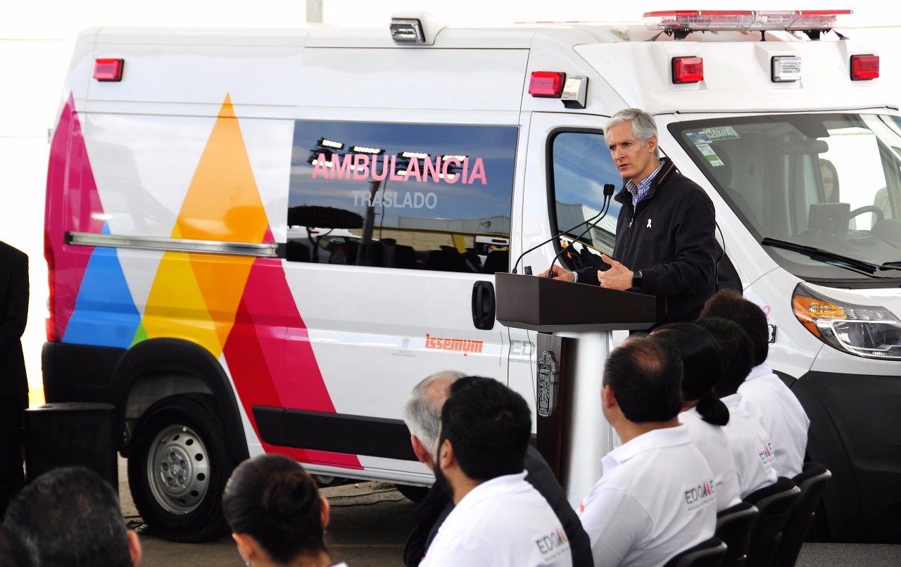 Detalló que 25 son ambulancias de traslado, 10 de urgencias básicas y 7 de urgencias avanzadas, que darán servicio a todos los afiliados del ISSEMYM.