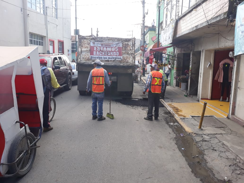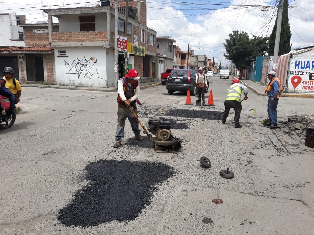 De manera paralela, se realizan labores de bacheo en los principales accesos a las delegaciones de San Mateo Otzacatipan, Santa Ana Tlapaltitlán y San Lorenzo Tepaltitlán.