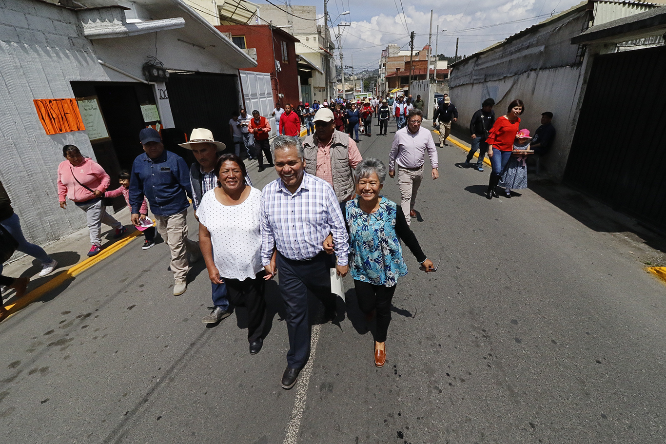 El gobierno municipal de Toluca continúa el trabajo intensivo de rehabilitación de vialidades, una de las peticiones más sentidas de la población, por lo que el alcalde Fernando Zamora Morales entregó más de mil 800 metros cuadrados de repavimentación de las calles Laguna de 7 Colores, Lago de Coacan y Jesús Reyes Heroles, en la Nueva Oxtotitlán.