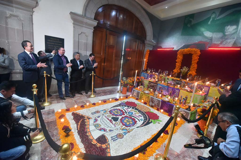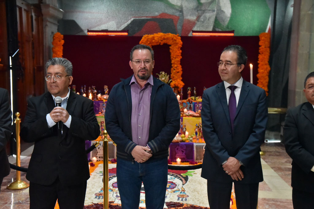 En presencia de los titulares de la Secretaría de Administración y Finanzas, Sergio Olguín Espinosa; de la Contraloría, Victorino Barrios Dávalos; de la Dirección General de Comunicación Social, Horacio Morales Luna, y de la Unidad de Información, Jesús Felipe Borja Coronel, el también coordinador parlamentario de Encuentro Social invitó a vivir estas tradiciones y creencias que unen a las familias que se preparan para recibir a las almas de los seres queridos que han abandonado esta vida.