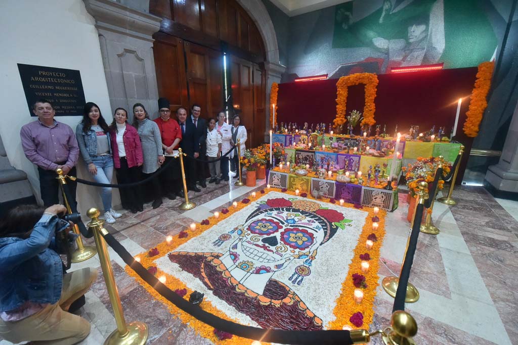 El legislador subrayó la importancia de preservar las tradiciones y agradeció al personal administrativo que colaboró en la colocación de la ofrenda y en la elaboración de un tapete hecho con semillas producidas en México, que representan la fertilidad de la tierra.