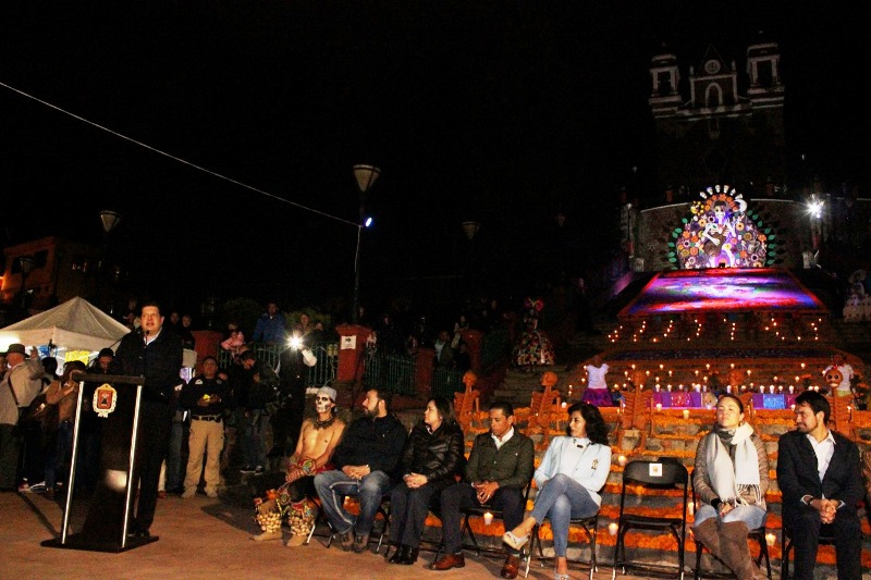 El alcalde de este municipio, David López Cárdenas, inauguró el Festival Cultural de Día de Muertos 2018, con el encendido simbólico de la Ofrenda Monumental ubicada en las Escalinatas del Calvario, la cual está dedicada al Árbol de la Vida de Metepec, recientemente incorporado como Patrimonio Cultural de México.