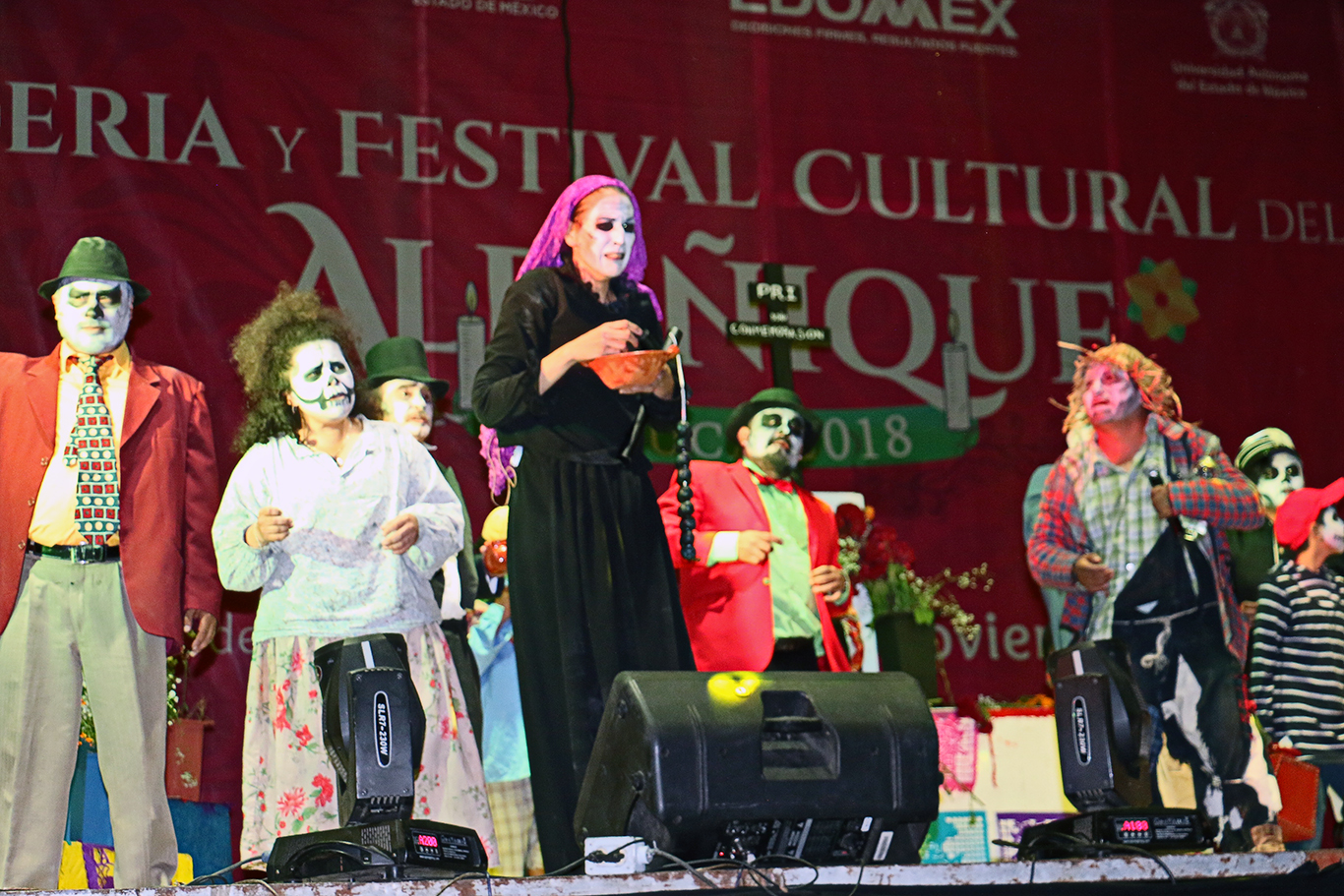 Entre juegos de palabras, carcajadas, aplausos calaveras literarias y gran ambiente familiar, miles de espectadores de todas las edades disfrutaron, como parte de la Feria y Festival Cultural del Alfeñique Toluca 2018, la puesta en escena El Fandango de los Muertos en la Plaza de los Mártires, donde la música, la sátira, el baile y el teatro son los principales elementos de un montaje que se mofa de acontecimientos de la vida política, social y deportiva del país y del mundo.