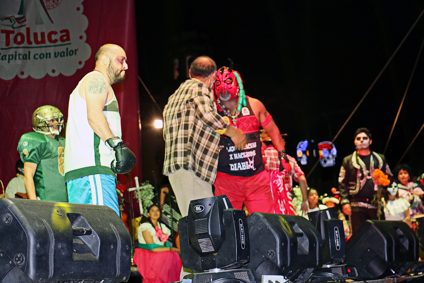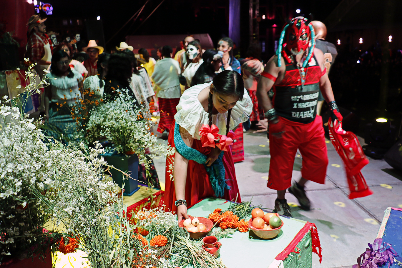 Por más de 90 minutos las danzas, la lucha libre y el bullicio fueron parte esencial de la obra, en la que los personajes demuestran que aún después de la muerte existen discrepancias. En una fecha tan especial para los mexicanos, la convivencia de los vivos con los muertos se convoca mediante las ofrendas que se colocan en las casas y en las tumbas de los seres queridos, lo que finalmente permite la gran fiesta llena de color, armonía y bellos recuerdos de quienes físicamente ya no están.